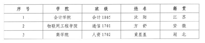 无锡太湖学院2020年度国家奖学金拟批准前名单公示