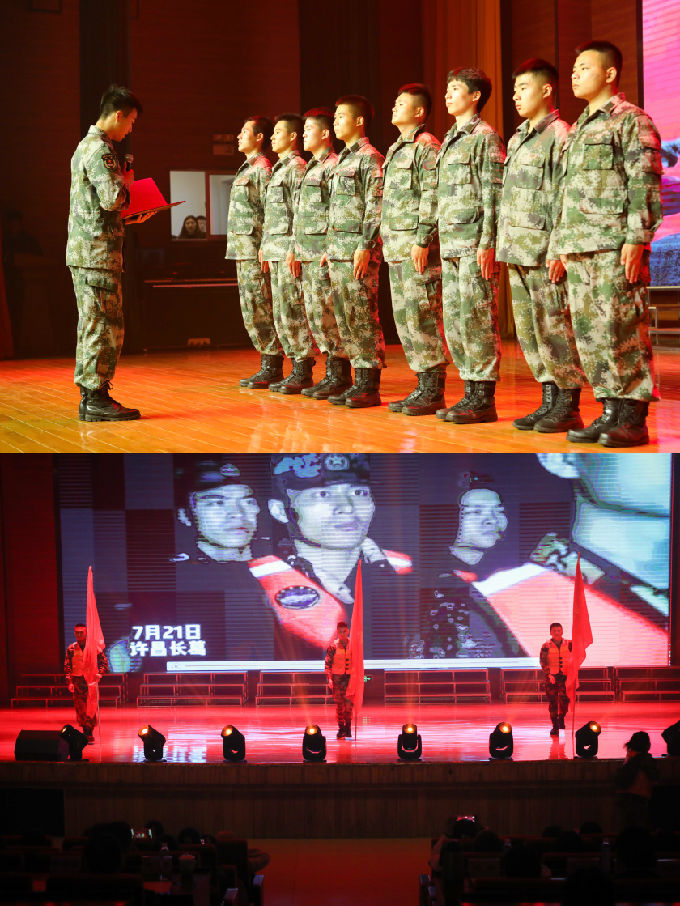 一首开场舞《欢乐地跳吧》拉开了整场汇报展演的序幕,精彩节目轮番登场,为观众们带来了一场视听盛宴。第一篇章为“燃烧梦想”,2021年秋季国家助学金获得者代表献上歌曲大合唱《国家》,他们用嘹亮的歌声唱响对祖国的崇敬与感恩。资助中心学生代表通过手语表演《逆光》,告诉我们只要心中常怀希望,就能跟随那一抹逆光勇往直前。在“和悦心灵”篇章中,大学生心理健康协会学生代表带来诗朗诵《在阳光下成长》,声情并茂的诵读抒发了学子心中对祖国对学校的挚爱之情。大学生心理健康指导中心用心理剧《为爱寻找归处》,告诉同学们爱就在我们的身边,与我们如影随形。接着,大会进入“闪耀青春”篇章,我校退役复学军人带来歌舞剧《铁血卫国保家园》,用充满力量的舞姿诠释了军人捍卫国土,护佑人民的信念和决心。大会还为“资助育人典型案例征集评选活动”获奖者、“心理育人先进案例征集评选活动”获奖者和优秀心理委员颁发了荣誉证书,并为陈思宇等8名优秀学子颁发了“国家资助政策宣讲员”聘书。