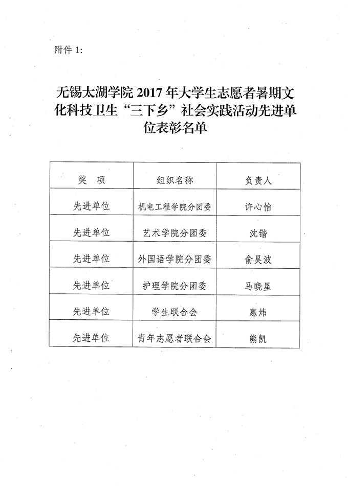 关于表彰2017年无锡太湖学院暑期“三下乡”社会实践活动“先进集体”和“先进个人”的决定