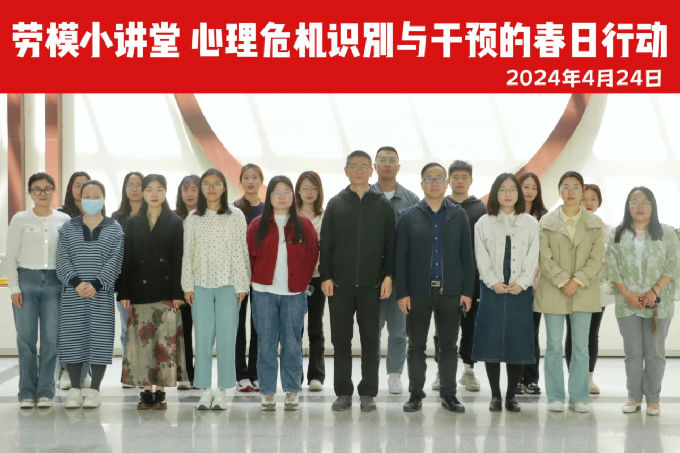 4月24日,我校劳模小课堂第一期“春心呵护——心理危机识别与干预的春日行动”活动在工科实验实训大楼A308圆满结束。本次活动邀请了无锡市精神卫生中心临床精神三科主任张国富分享预防心理危机的经验。无锡市劳模、校党委副书记丁涛出席并合影留念。