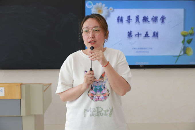 本网讯 4月18日,我校第十五期辅导员微课堂在商科楼A107成功举办。来自商学院的何丹青老师和来自艺术学院的王彦环老师围绕学生突发事件应急处置和辅导员与学生谈心谈话进行了细致分享,来自各学院的16名辅导员参加本期微课堂。