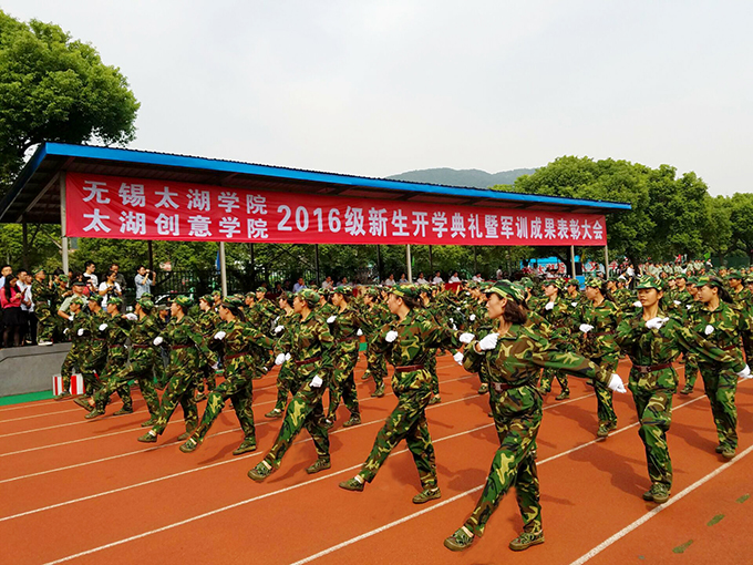 在庄严的国歌中,2016级新生开学典礼暨军训成果表彰大会拉开帷幕。接受检阅的5000多名新生以整齐的队形排列在会场中央,副校长何宏金,校长助理、太湖创意学院院长陈鹏飞检阅军训队伍,对全体新生致以亲切的问候。