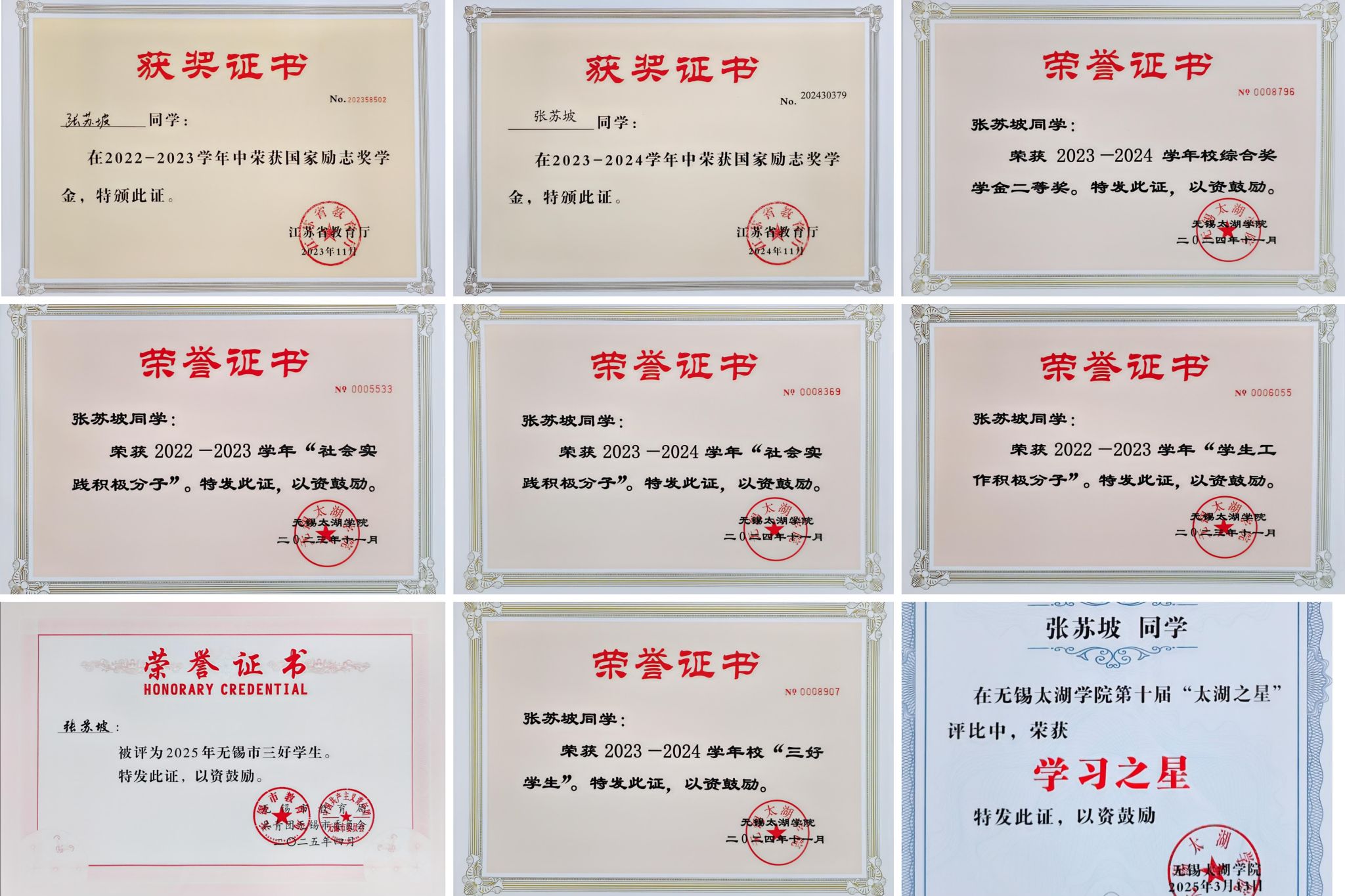 无锡太湖学院第十届“太湖之星”--学习之星