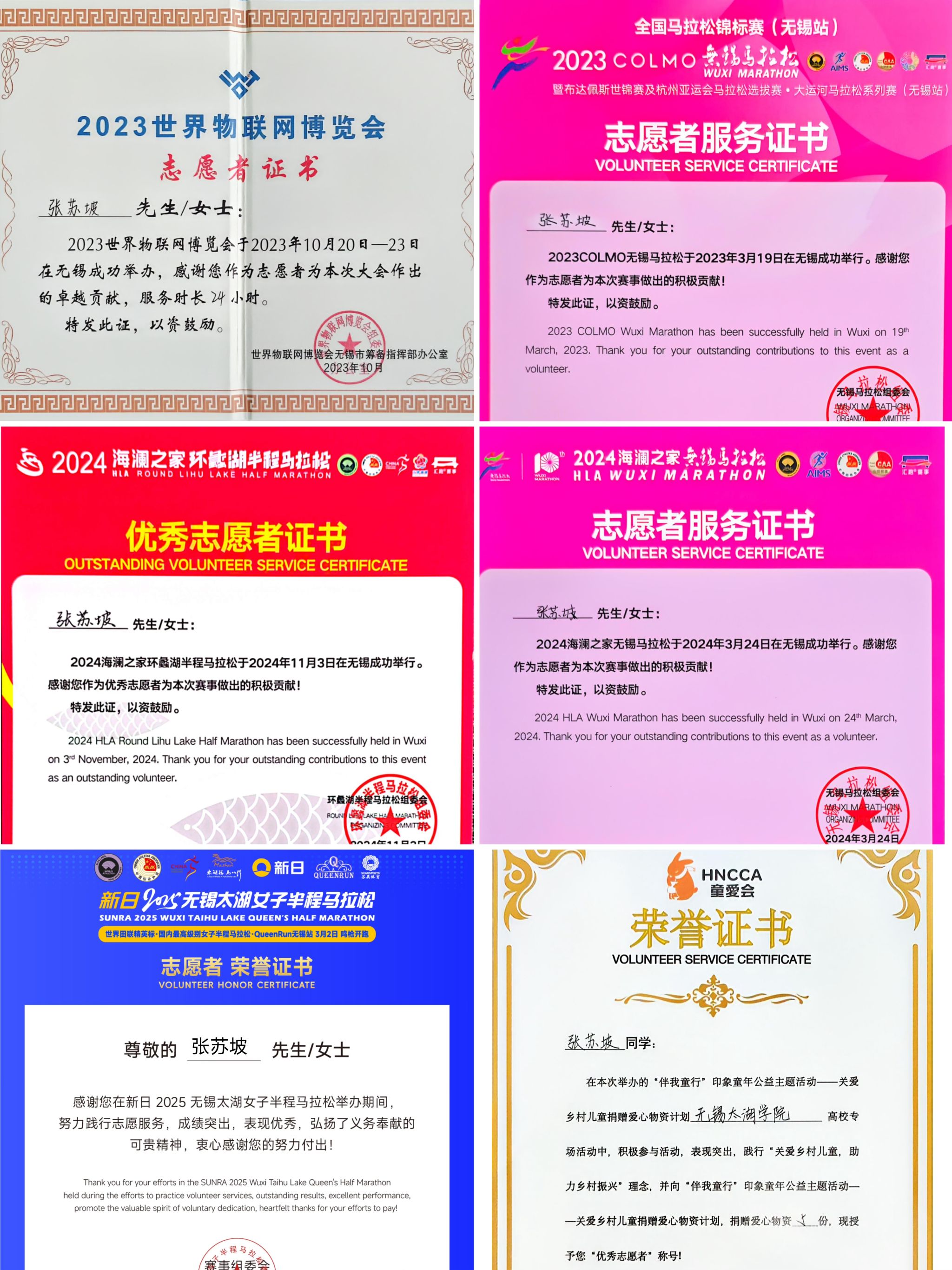 2024年环蠡湖半程马拉松优秀志愿者